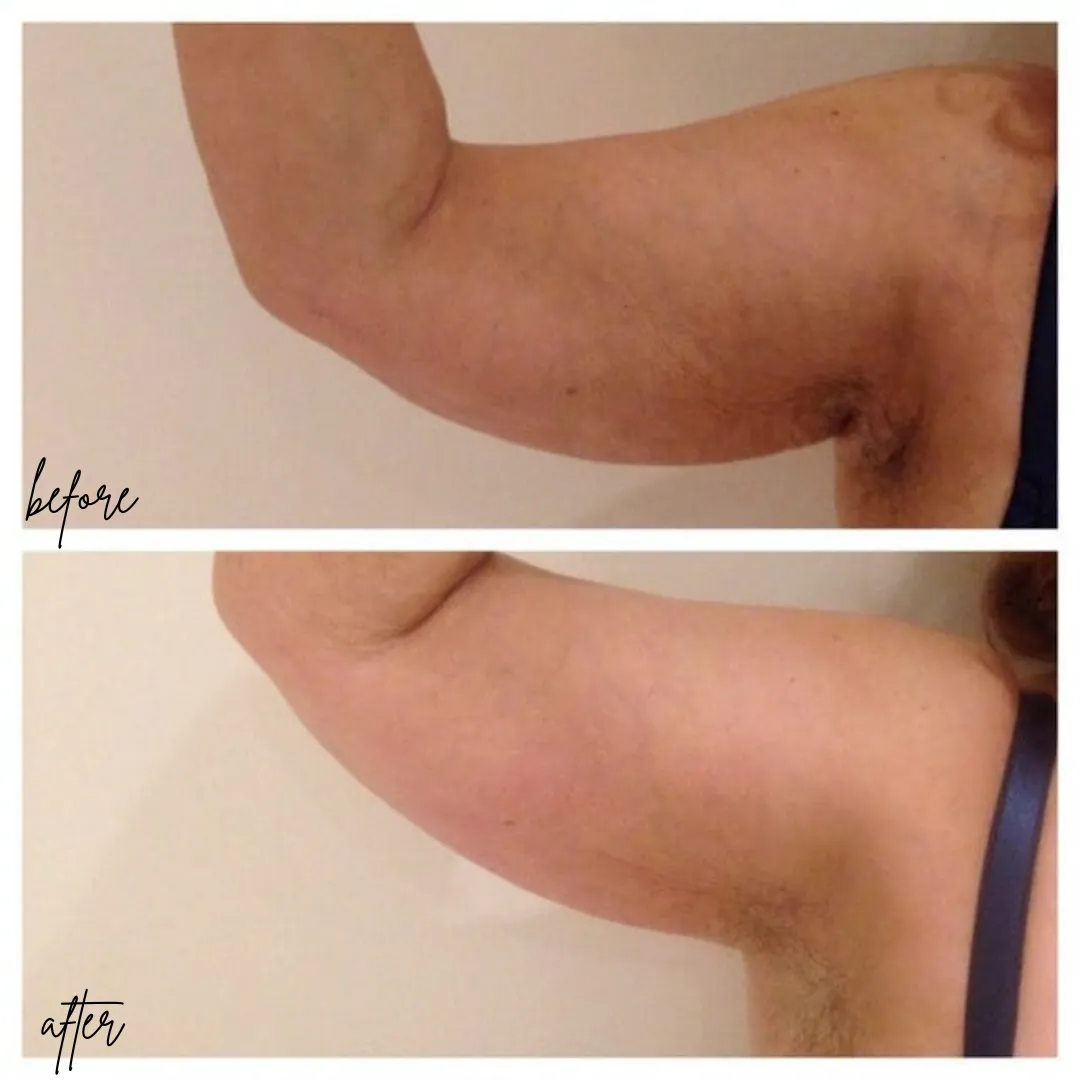 Toning is tailored for areas like post-baby belly, bingo wings, and cleavage, with the added potential for enhancing breast firmness. Its cold application provides an immediate skin-tightening effect.
